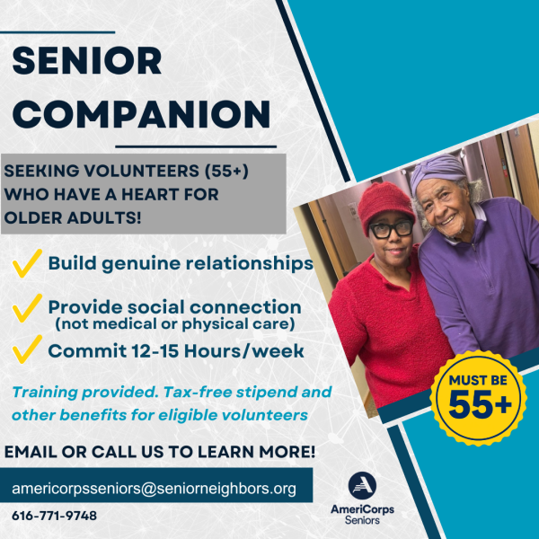 Through AmeriCorps Seniors, Senior Companion volunteers: